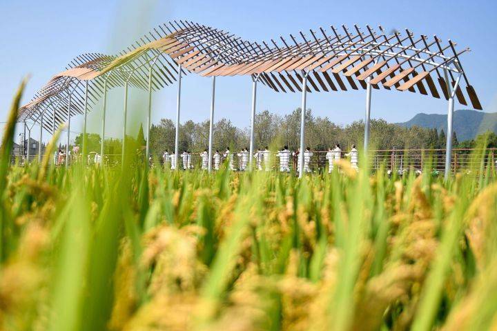 在桐君街道梅蓉村,以艺术赋能乡村,上千亩彩色稻田与错落分布的艺术作品交织在一起,举办各类艺术活动,探索乡村艺术走廊建设,打造出富春江桐庐段的“黄金左岸”。