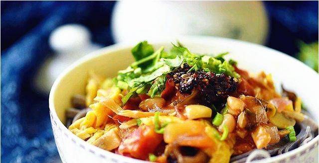 除了面,刀削面的料也是它能受人喜爱的关键;番茄酱、肉炸酱等酱料,配上香菜、辣椒、还有那一壶香醋,这让人爱不释手。