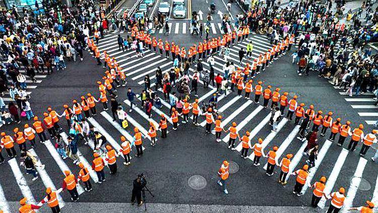 为了保证游人安全高效过路口,杭州最热闹的路口——延安路和平海路交叉口设置了“X”型对角斑马线,四个街角新增设了红绿灯引导路人通行。“最美人墙”2.0版由原先的“二”字形,转变为如今的“X”形,路人不再需要过两次人行道便能直达斜对面,通行效率显著提升。