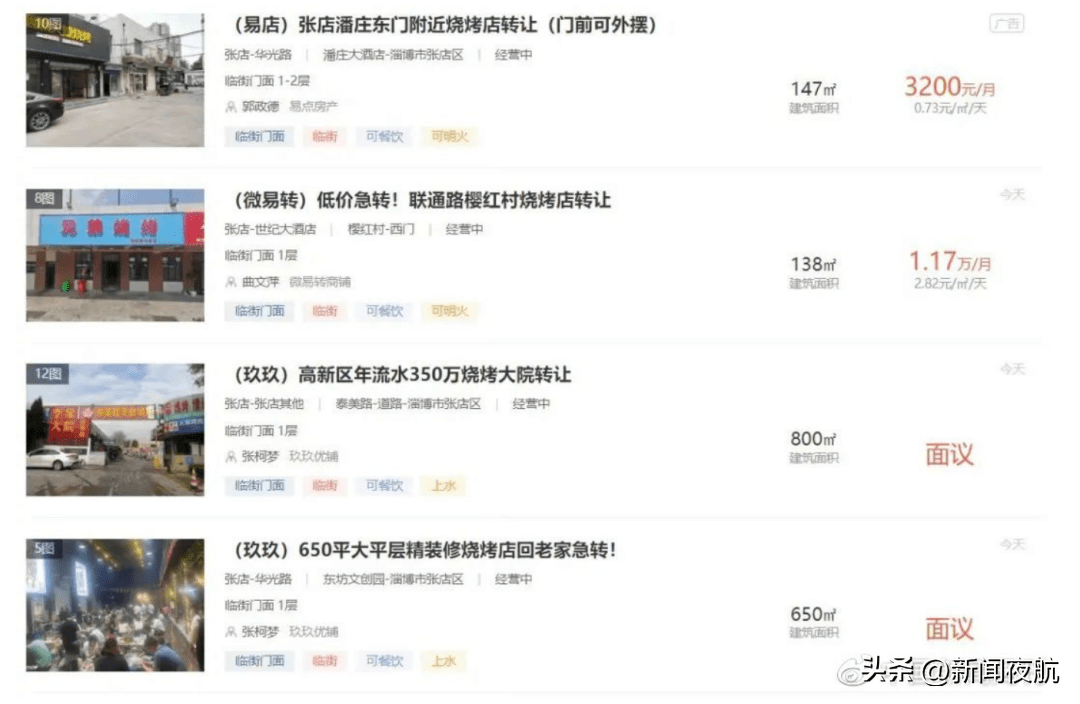 据中国新闻周刊报道,近段时间,58同城网站上出现了数百条淄博烧烤店铺转让信息。其中不少店铺都具有新开业、新装修和新设备等特点,多数表示接手后即可继续经营,转让费用从十几万到三五十万不等。