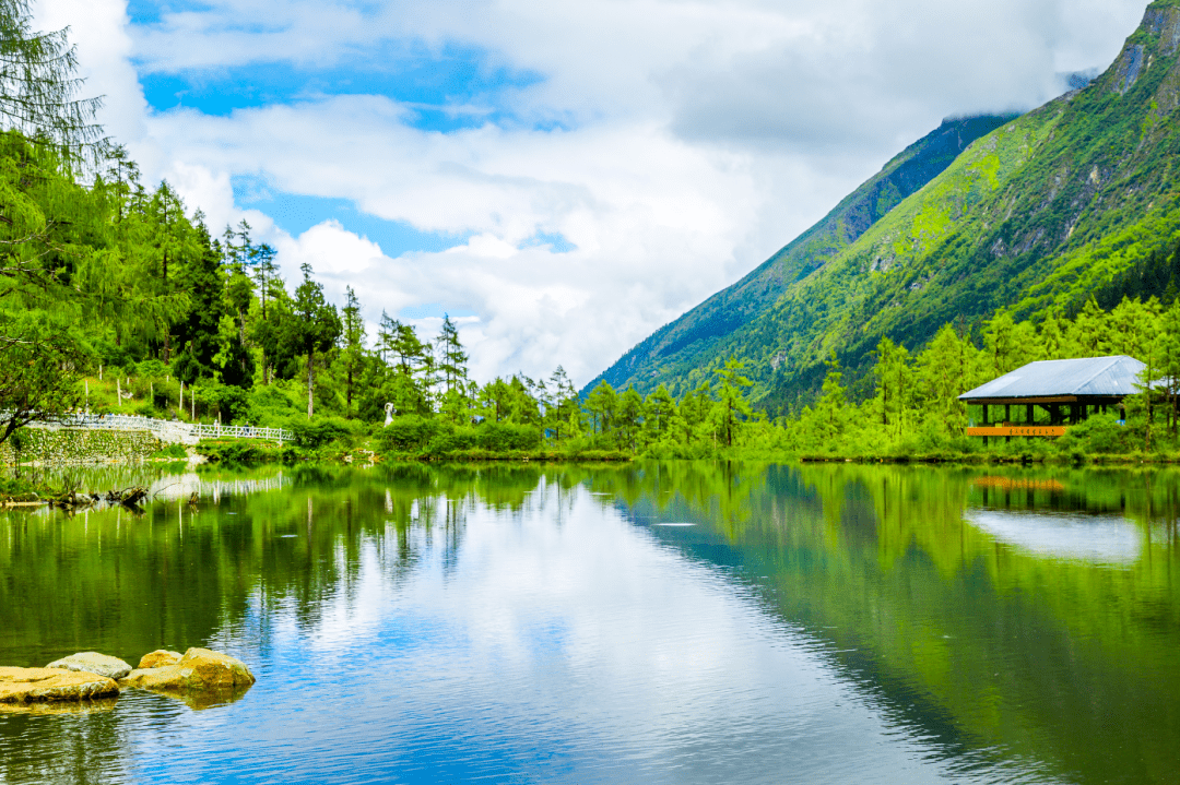 连绵的雪山、最原始的密林、还有不常见的红石、晶莹剔透的海子,来到这里,像是不经意闯入画卷之人。