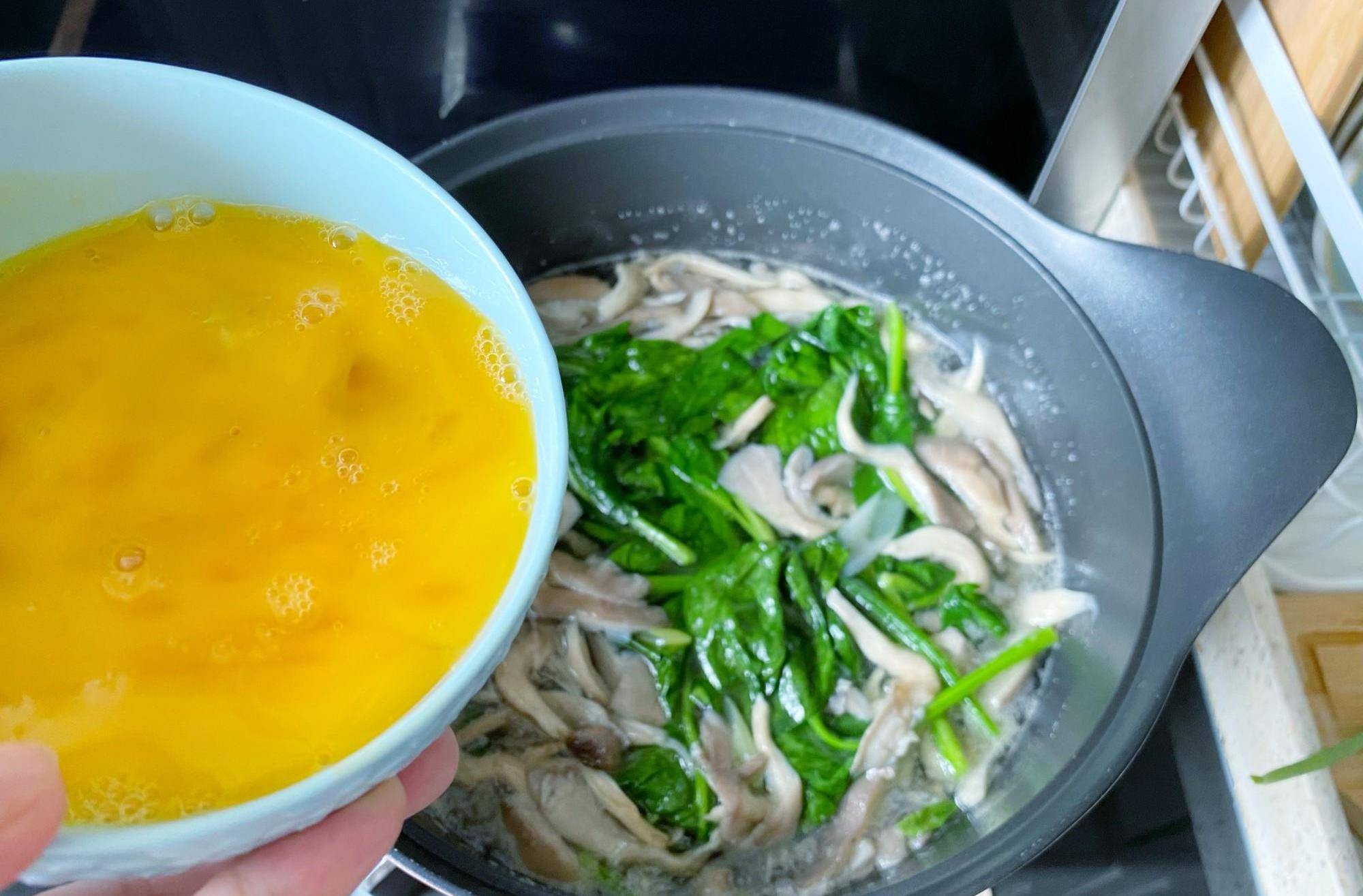 1、蘑菇和菠菜做菜,都需要提前焯水后再下锅,菠菜焯水去掉草酸,蘑菇焯水去掉土腥气,这样烧出来的汤菜,味道更鲜美。