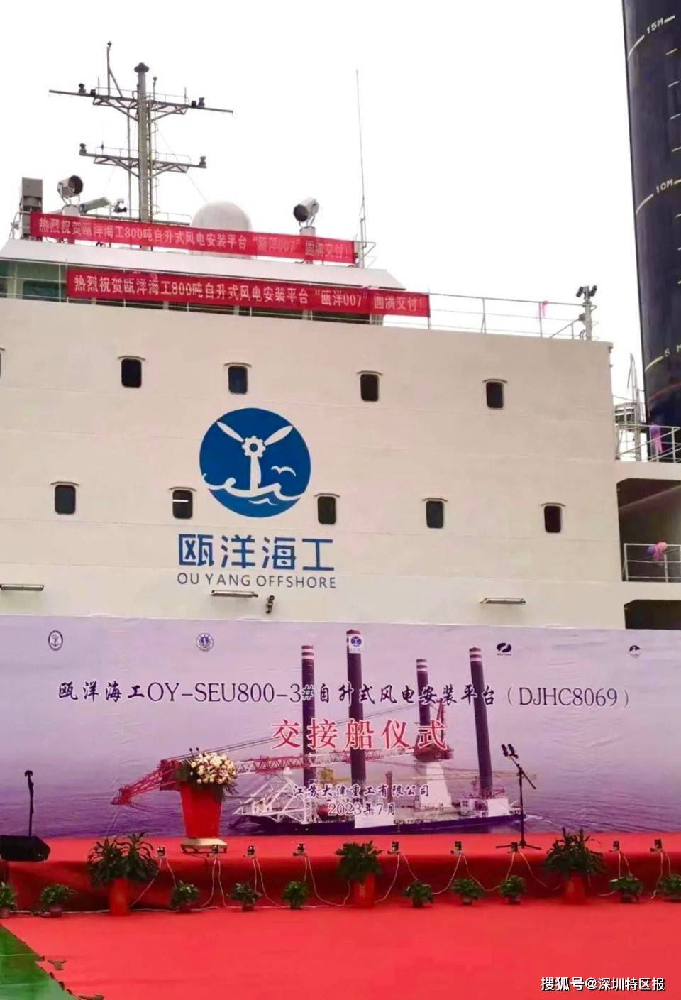 "瓯洋007"海工平台船舶正式交付。图源:深圳前海