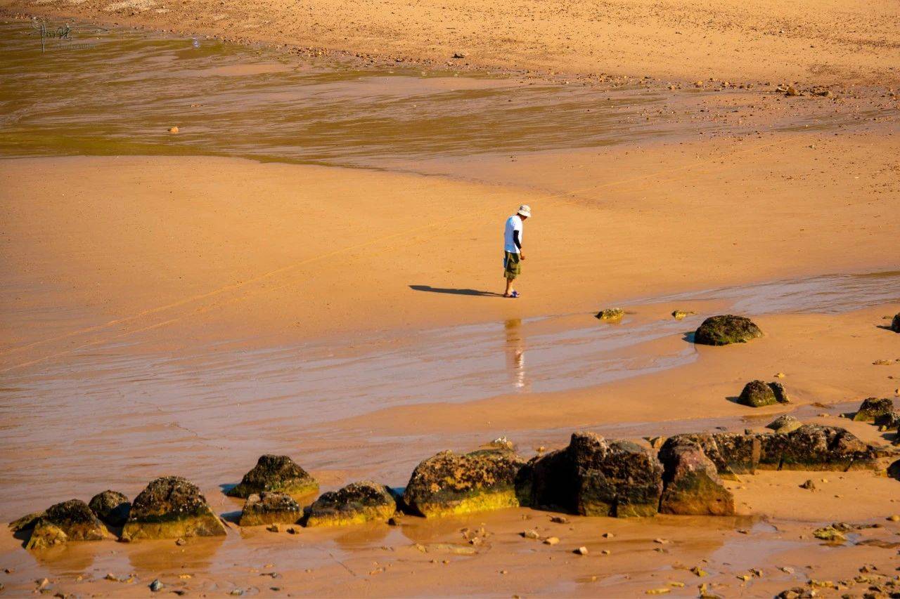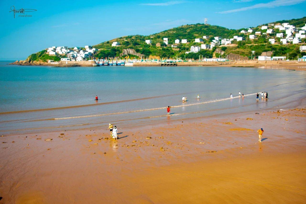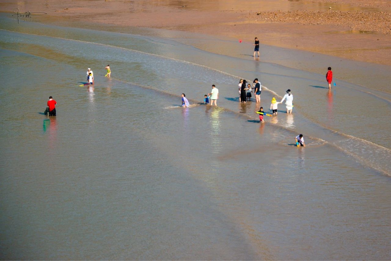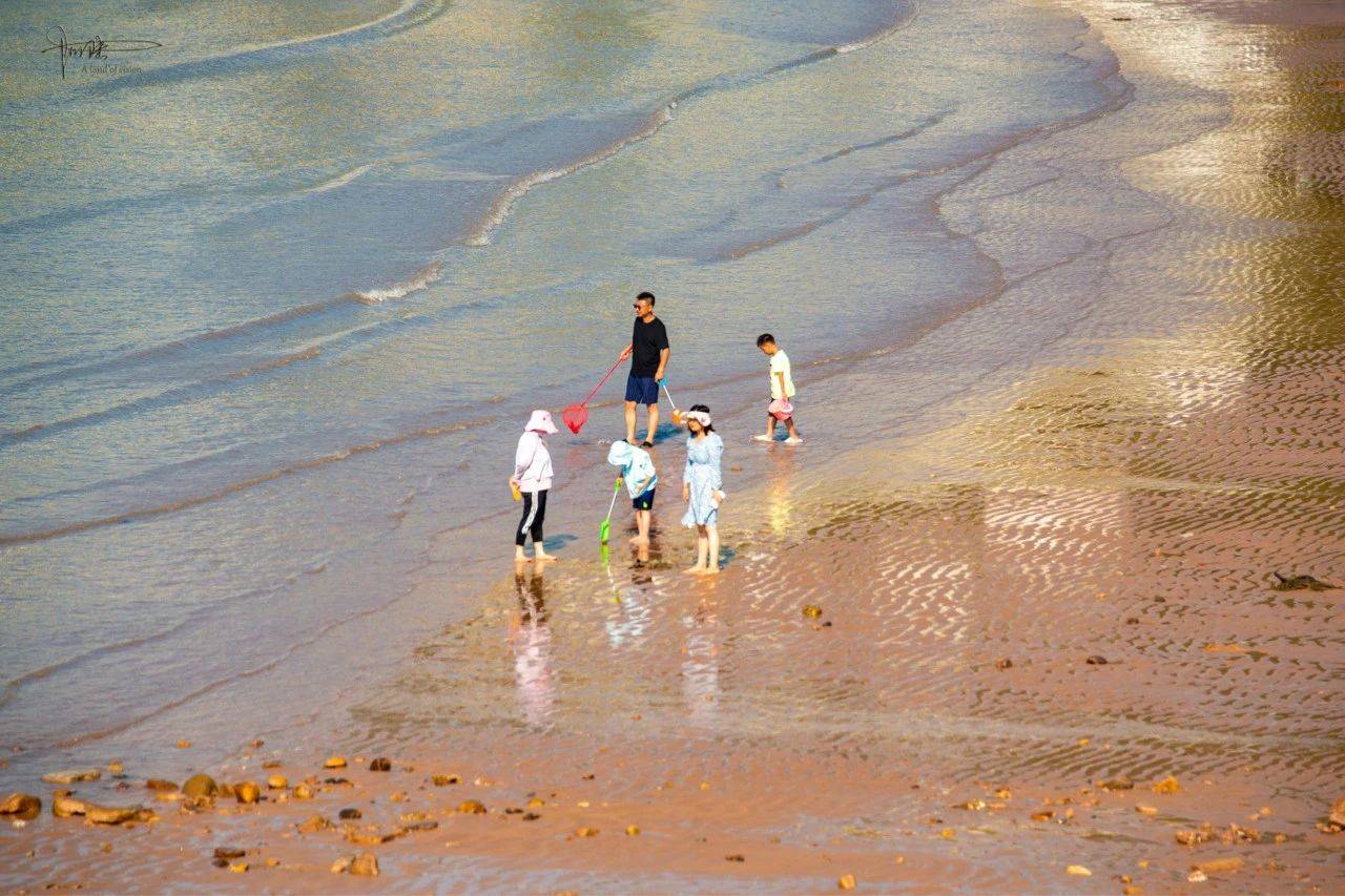 公路旁边的沙滩不多,有一片的面积倒挺大,目测还完全免费,所以即便阳光猛烈,仍有不少到嵊泗度假的家庭会全员出动,爷爷奶奶或外公外婆和大人小孩一起沉浸在太阳炙烤的海浪沙滩中不可自拔。