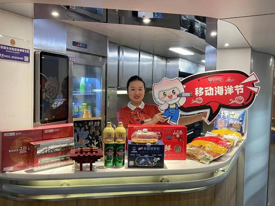 近日,国铁济南局山东济铁旅行服务有限公司在高铁列车以及自营店铺创新推出“移动的海洋”为主题的首届海洋节活动,并推出海洋主题系列商品展销活动,让旅客不出车站感受“海洋”的清凉与狂欢。