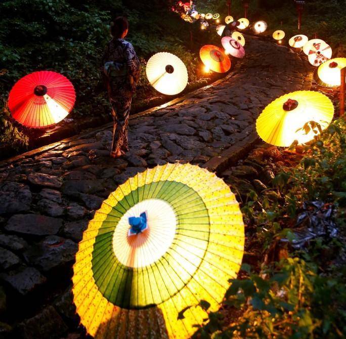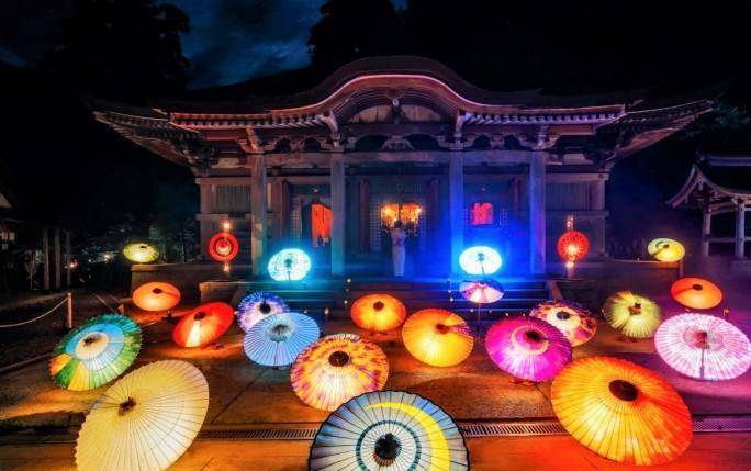大家看日本电视里,通常都会发现日本的伞都做得非常精致,其实鸟取县是和式伞的名产地,而在庆典开始的时候,大神山山神寺的参拜道路上会点亮100个日本的和式伞灯,是用伞作的灯。被装置的和式伞灯的任何一个都是鸟取的匠人以大山周边四季的美景为背景制作的,边看脑海中浮现各个和式伞所呈现的情景的话应该可以体会到梦幻般的氛围吧。这个活动开演前1个小时就有超级多人排队,一定要提前去哦。记得要穿长袖、长裤子和方便行走的鞋子哦,携带防虫喷雾的话,会更享受你的旅程哦。