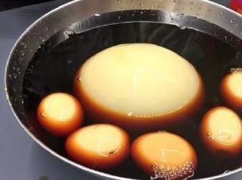 然后厨师把蛋放在了一个有调料的盆子里面泡着,旁边还有几个鸡蛋,大家可以对比一下,就知道这个鸵鸟蛋有多大了,我觉得不用吃拉面了,这个鸵鸟蛋就够吃了,还不知道我能不能吃完呢?感觉这一个鸵鸟蛋都能抵上20个鸡蛋了,就算是我比较喜欢吃蛋,一次最多也就是吃10个鸡蛋而已。