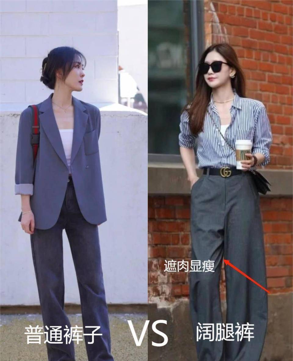 1)普通裤和阔腿裤,谁不喜欢遮肉又显瘦的裤子呢?