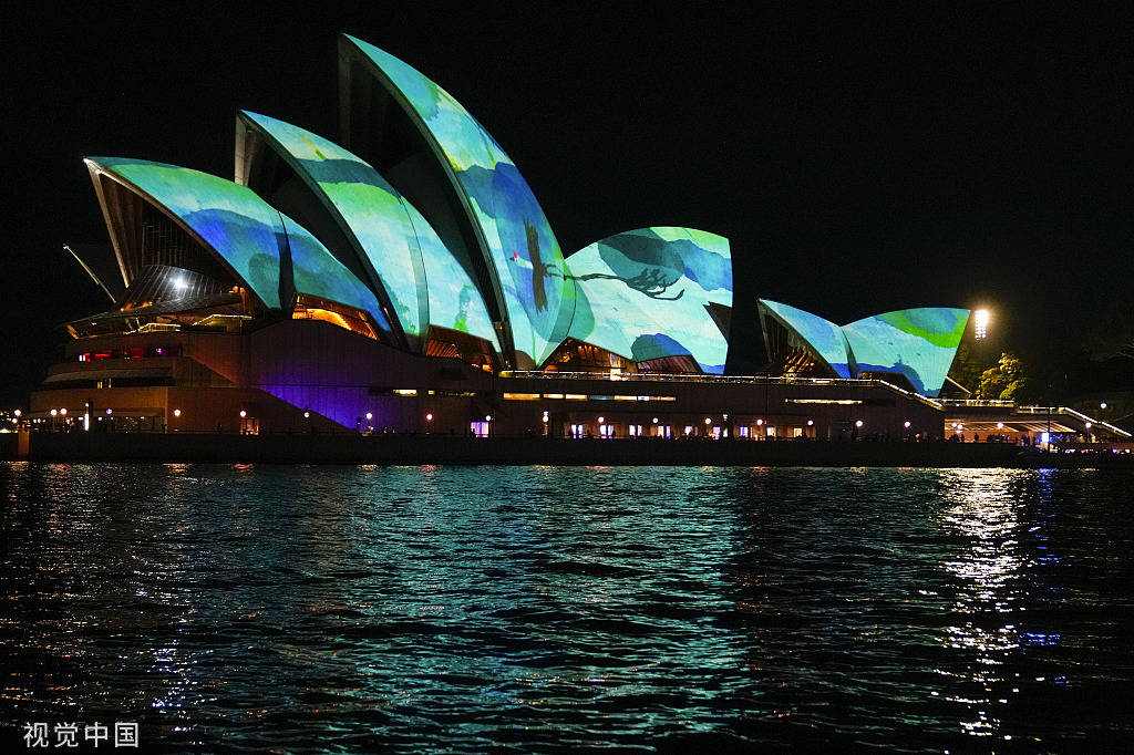 【环球时报赴澳大利亚特派记者 任筱楠】当夜幕降临澳大利亚杰克逊港,悉尼歌剧院巨大的白色“贝壳”和海港大桥的钢铁骨架便化身成光影的幕布。有“画笔诗人”之称的澳大利亚风景画画家约翰·奥尔森的一幅幅画作在灯光变换中,游弋在歌剧院的外墙上;海港大桥的塔桥上,公主鹦鹉、七彩文鸟等濒危鸟类带着观众飞跃荒漠和丛林;不经意间,1000多台无人机从大桥一侧起飞,在夜空中变化出我们熟悉又陌生的自然世界——鲸鱼跃出海面、“地球”在海港上空旋转、“星河”静静流转……