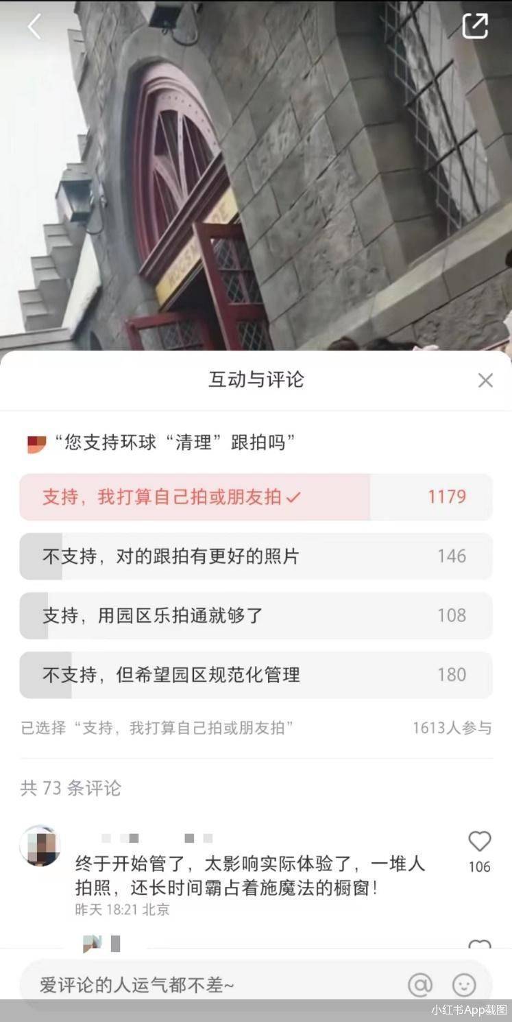 “每次去哈利波特园区都会碰到很多旅拍的人,在同一个位置一直不动,热门打卡地一个摄影师霸着半小时起,堵的路上水泄不通,限制商业旅拍也在一定程度上为游客们提升了体验感。”北京环球影城年卡用户王曦说道。
