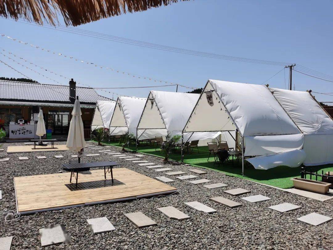营地突出延边特色烧烤风味,建设整齐划一的户外烧烤屋,建有户外帐篷11顶,景观湖及湖心亭1处,为游客提供特色的民俗餐饮和特色烤兔,同时体验民俗饮食制作、景观垂钓、体育运动场。