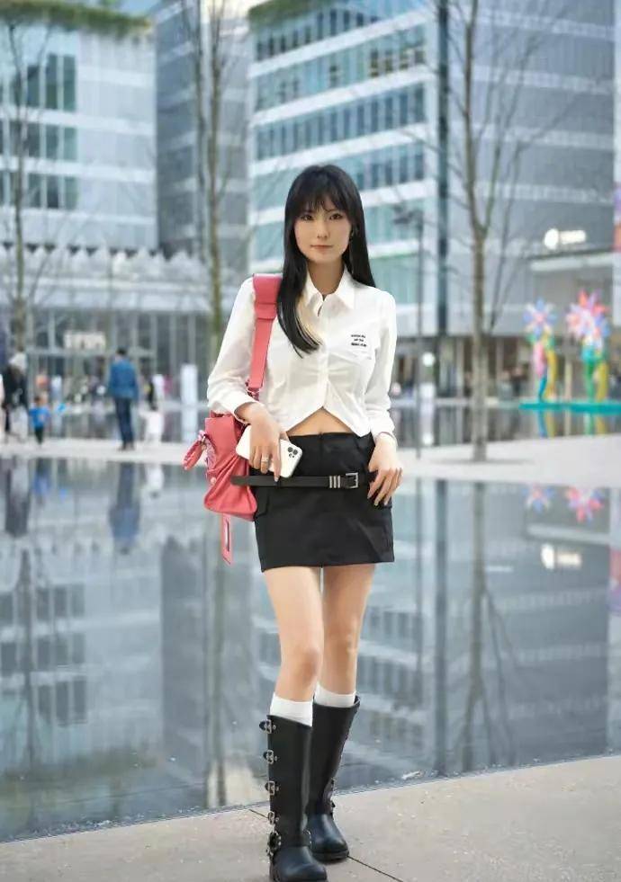 如果一个人的身材比例一般,那么通过“短裙+靴子”的组合来改善身材比例是非常困难的。然而,如果你知道如何选择合适的裙子和合适的靴子,可能仍然有优化的空间。