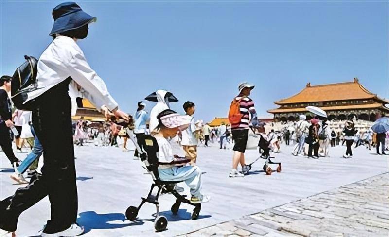 一位推着轮椅车的青年男子神色焦急,他从入口处倒退出来,径直朝端门观众服务中心走去。这位青年男子告诉北青报记者,他姓郑,刚刚忙完辽宁锦州老家的夏收,和家人报了旅行团来北京旅游。