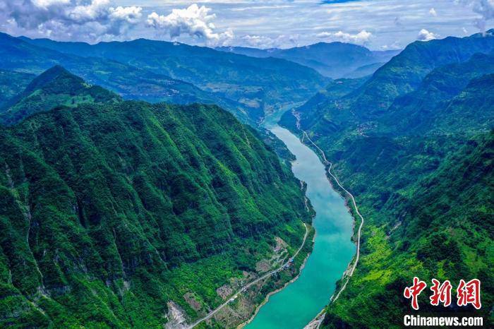 金沙江如一条翡翠项链环绕群山。 杨建 摄