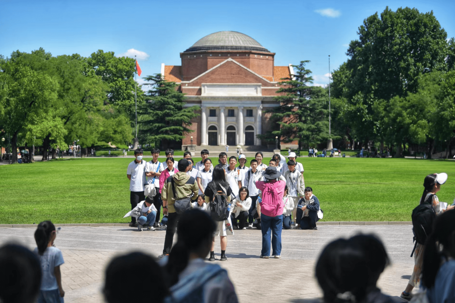 在北大未名湖畔,60余名身着统一白色校服、头戴小黄帽的中学生留下了一张珍贵的合影。领队教师刘先生说:“我们来自河南省许昌实验中学,趁着校园开放,特意在这次北京暑期游学中增加了北大的行程,想带孩子们来看看梦想中的校园。”