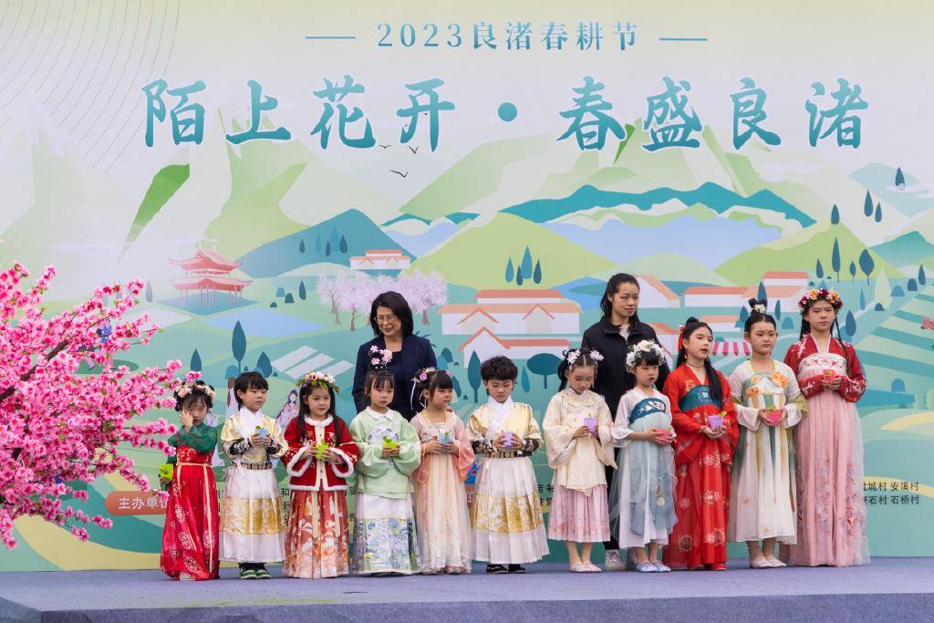 本次春耕节,特邀嘉宾亚运冠军邵依雯也来到了现场。邵依雯为大家分享了亚运精神,并与花童、花神们亲切合影。随后亲手为现场的小朋友们赠予春苗,小朋友们也将充满了亚运健儿殷切期许的春苗种进了良渚的沃土里。青春靓丽的亚运宝贝、传统古韵的汉服文化、激昂的亚运风采,带来了一场古今文化的碰撞。