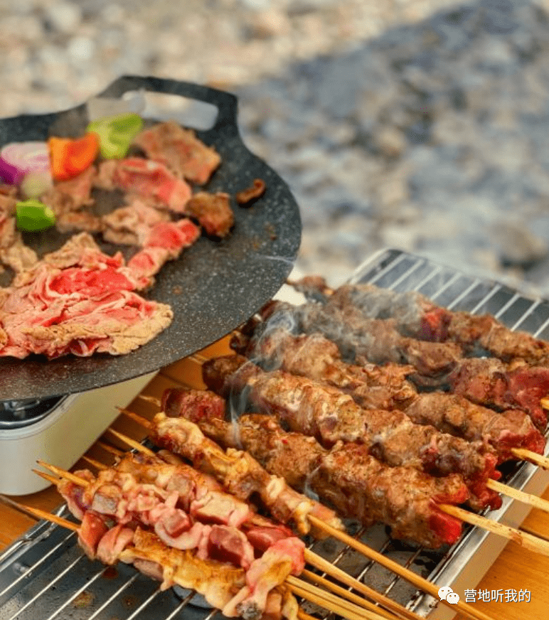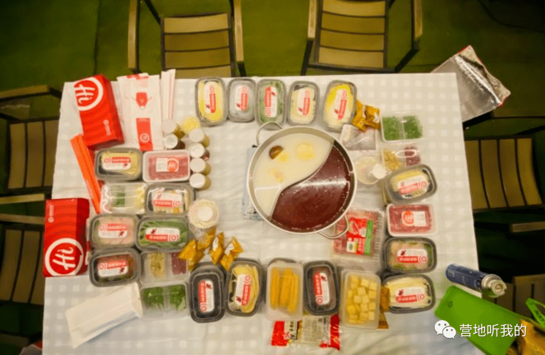 营地依湖而建的露营烧烤地很大,吃饭可以选择烧烤还是海底捞火锅,所有食材都是锅圈食材,分量也还是很足的,当然自己能多带些食材肯定会吃得更丰盛。