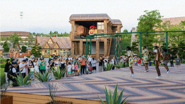 沿着巡游路线与游客们见面互动