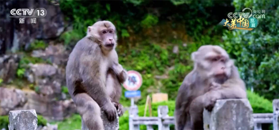 在一线天景区就长期生活着这样一群藏酋猴,它们经常三五成群在草丛里、树枝上,或打盹、或嬉戏。这会儿温顺乖巧,下一秒,它们就可能变成调皮的“刺头”。