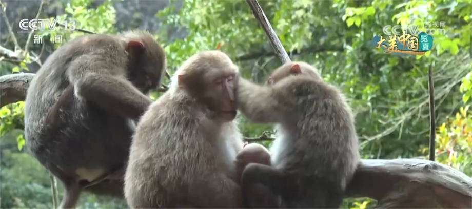 如今,一线天景区的藏酋猴群已逐渐发展壮大。今年,猴群里就新添了几个新成员,看,这只可爱的猴宝宝玩得正欢。