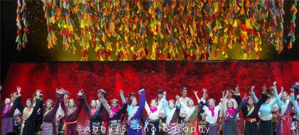 当以十多个数米高的巨型转经筒、上万盏酥油灯点亮的那刻,震撼大秀拉开帷幕。小时候对这种歌舞剧感觉除了服装,灯光美,感受不到传递的故事和内涵。现在即便听不懂他们的语言,但眼前的每一幕都让人莫名感动。