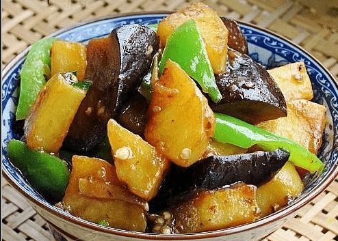 这片土地上的三种新鲜食物是由茄子、土豆和青椒制成的,味道很好。在东北地区,如果一道菜可以作为一顿饭,那就是对它的最高评价。