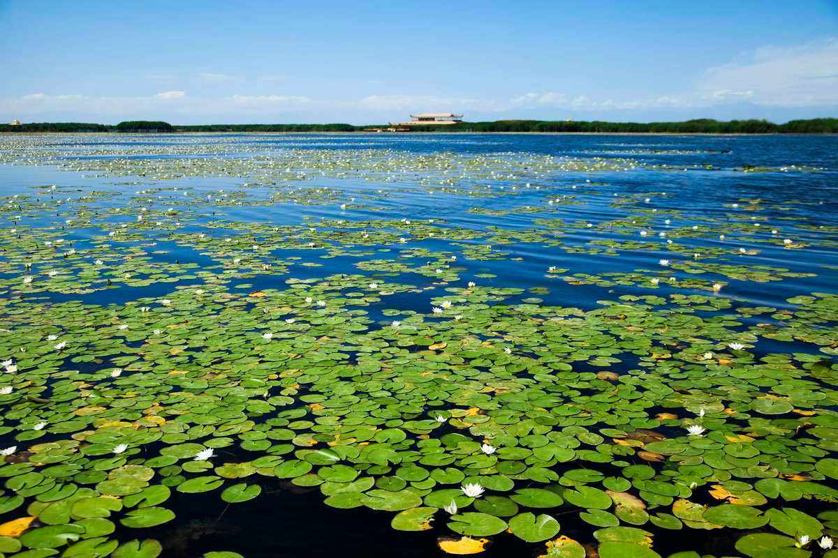 离开海浪与沙滩,盛夏时分的博斯腾湖,仿佛又换了一幅模样,宛如来自江南水乡的小家碧玉呈现在众人眼前,芦苇丛生,睡莲竞放,禽鸣鱼跃,微波荡漾。这些睡莲的根须能扎于十几米水下,却仍然要不屈不挠地冒出水面,出尽风头,争着出来的目的就是为了绽开自己的美丽。