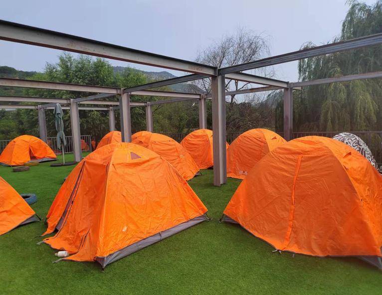 在晚餐之后,学生们在庄园内观看了一场露天电影——建党伟业,在电影观看完毕后组织学生进行帐篷的搭建,锻炼了学生的野外生存能力。