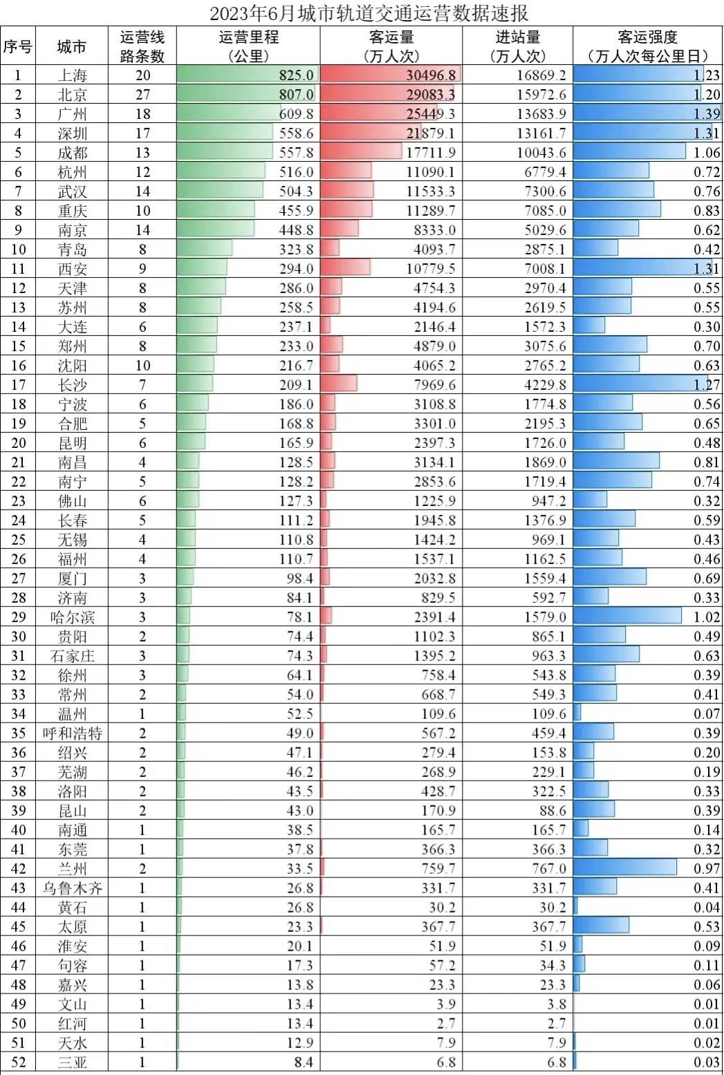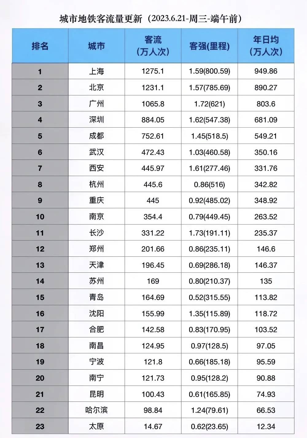 不知道大家发现没,在全国地铁客流量强度大于1的城市,也就那么几个,比如北上广深、成都、西安,而另一个就是长沙,在大假的时候,比如端午节期间,长沙的地铁客流量强度甚至排名全国第一,而且在很多时候长沙的客流量强度都排进全国第一,一般情况下也是仅次于北上广深四大一线城市排名第五的存在,这真的是很难想象的。