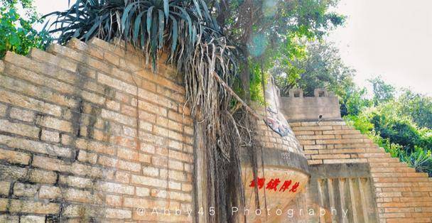 现在公园里还可以看到“钢铁阵地”四个大字,有三层结构。分别是四通八达的地下安业民坑道、地面战壕、碉堡,深20米,长250米。