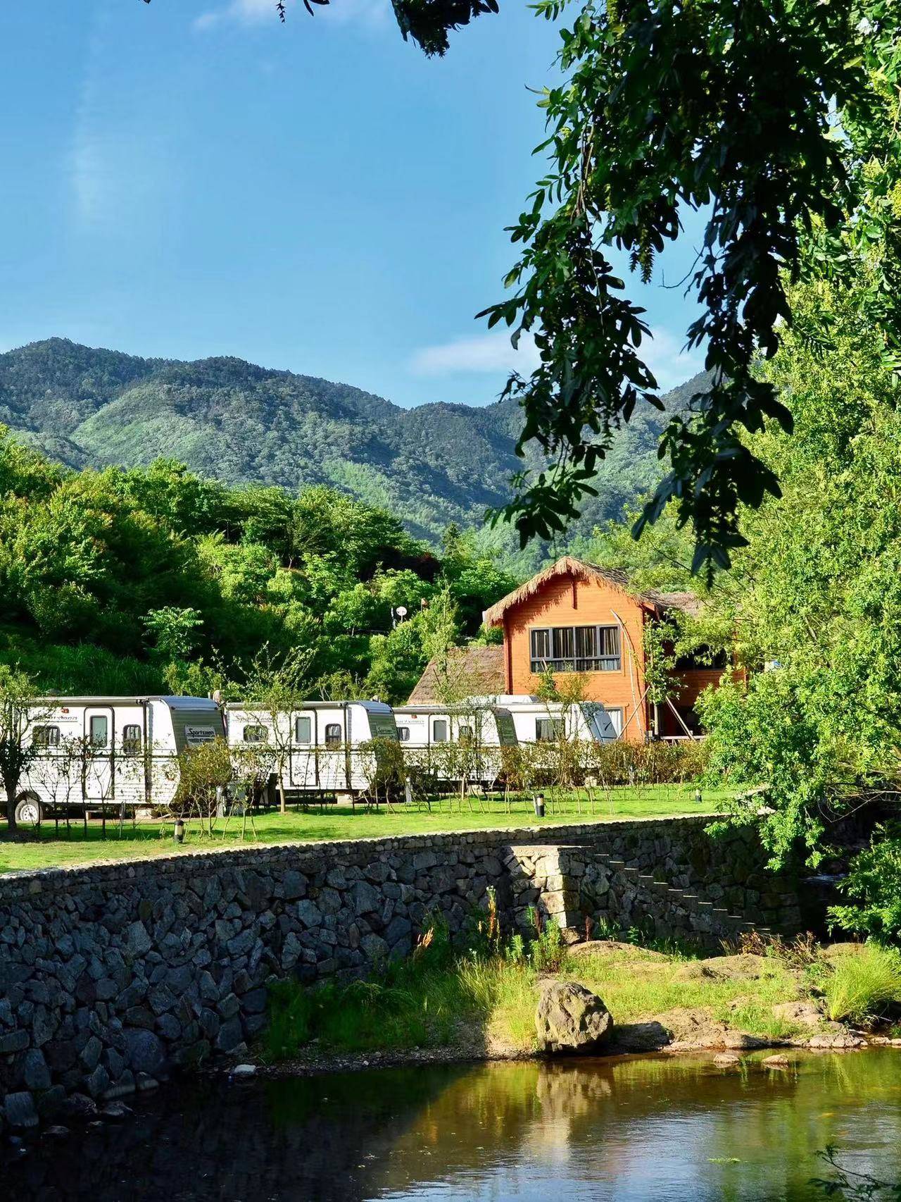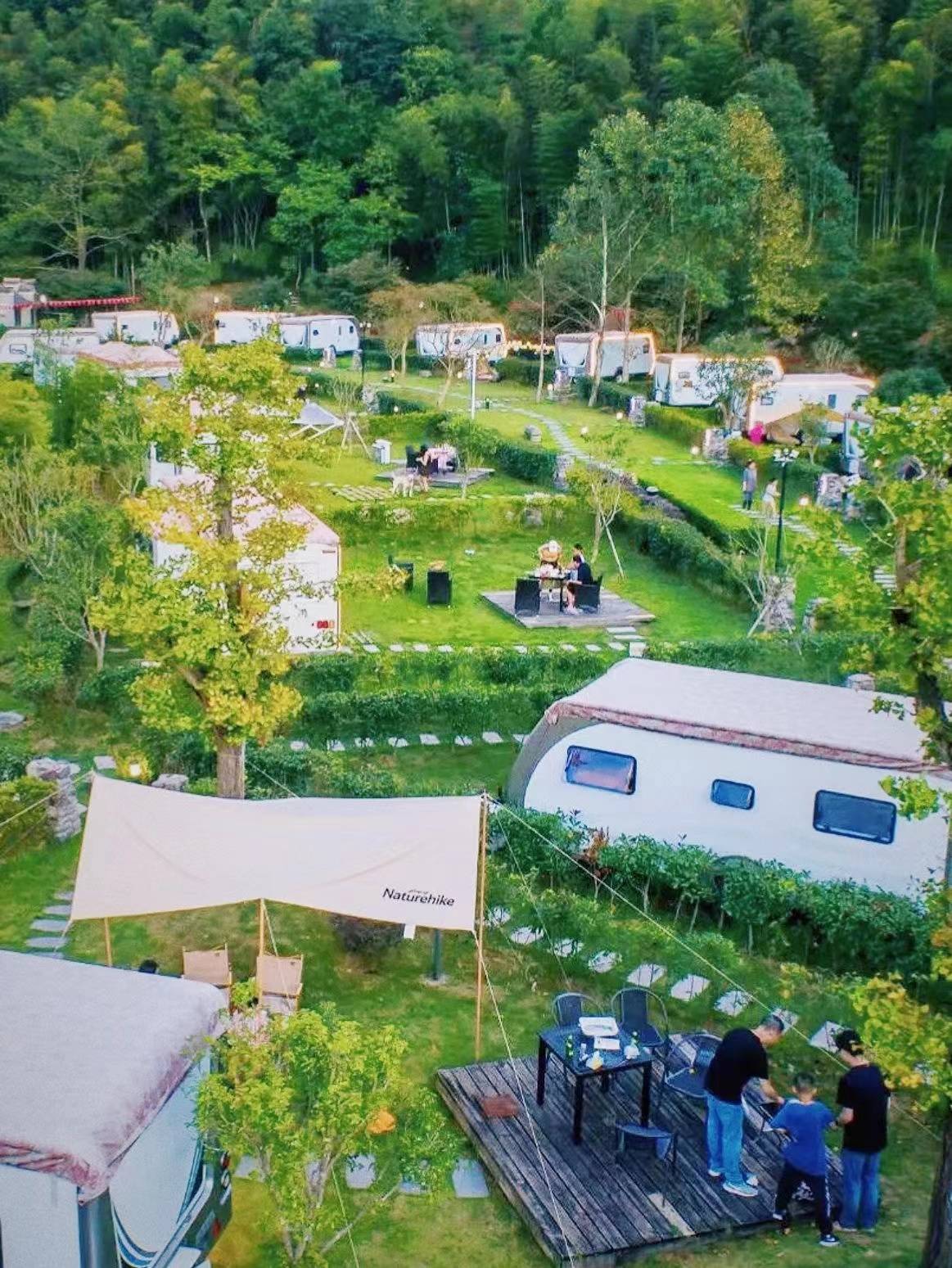 徐凫岩房车,错落而立。与自然风景融为一体,而且一车一院,当夜幕降临的时候,房车四周的氛围灯便会亮起,肉眼才可感受的一种氛围感,这份属于山野的浪漫随着满天星空的加持,变得格外美。