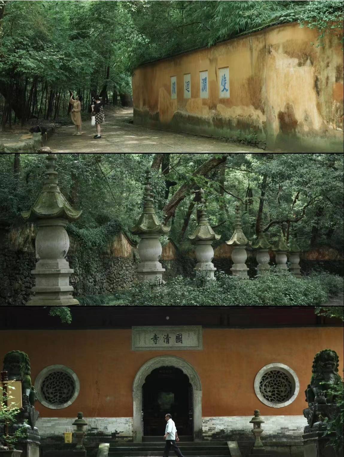 寺院真的很清净,古树参天,石桥映着溪流,为寺庙增添了宁静悠远,进入寺院就有一种心静自然凉,寺院真的充满了中式的美学,嘎嘎好拍照!寺院还有一棵千年梅树,这棵见证国清寺的辉煌与传承,冬天待到花开,值得再去一趟。