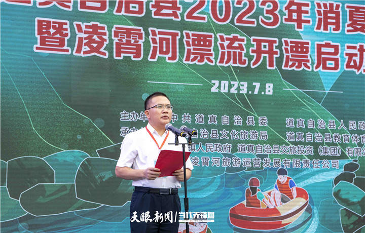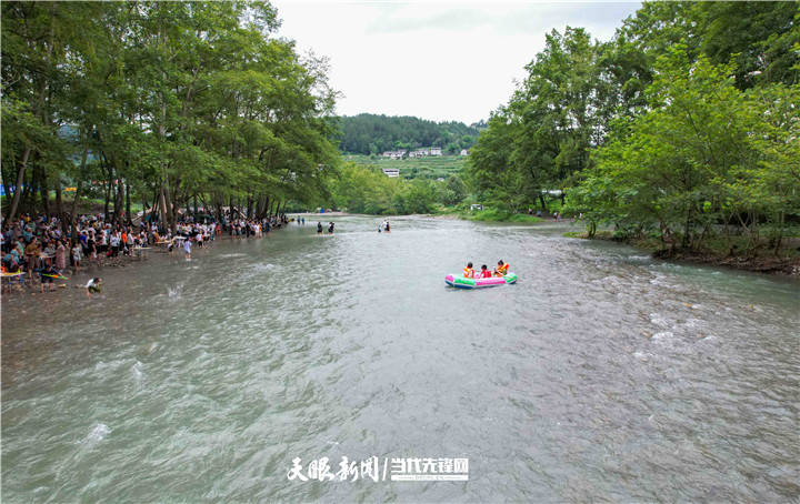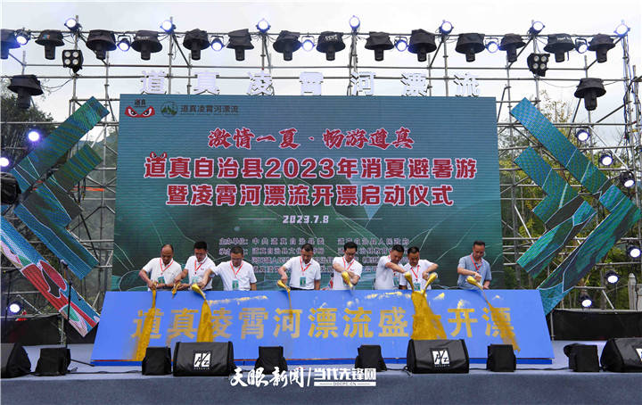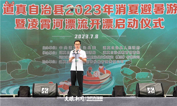 7月8日,道真自治县2023年消夏避暑游暨凌霄河漂流开漂启动仪式在河口镇三坝村举行,来自该县各乡(镇、街道)以及重庆市南川、武隆等地嘉宾和群众参加活动。