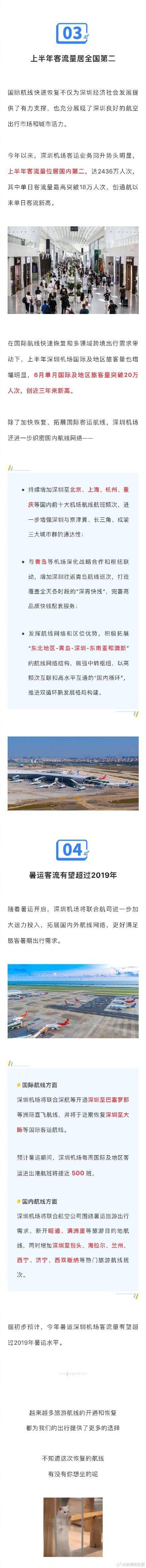 据初步预计,今年暑运深圳机场客流量有望超过2019年暑运水平。越来越多旅游航线的开通和恢复,为我们的出行提供了更多的选择~(深圳交通)