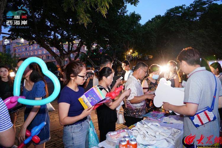青岛西海岸新区文旅推荐团手持标有“旅居西海岸 寄情山水间”“啤酒水龙头”等具有西海岸元素的宣传标语、旅游线路、旅游地图、旅游指南等各式各样的宣传产品,将西海岸特色尽情展现在杭州市民的眼前,现场群众纷纷驻足观看,掏出手机拍照互动,快闪活动场面热闹非凡。