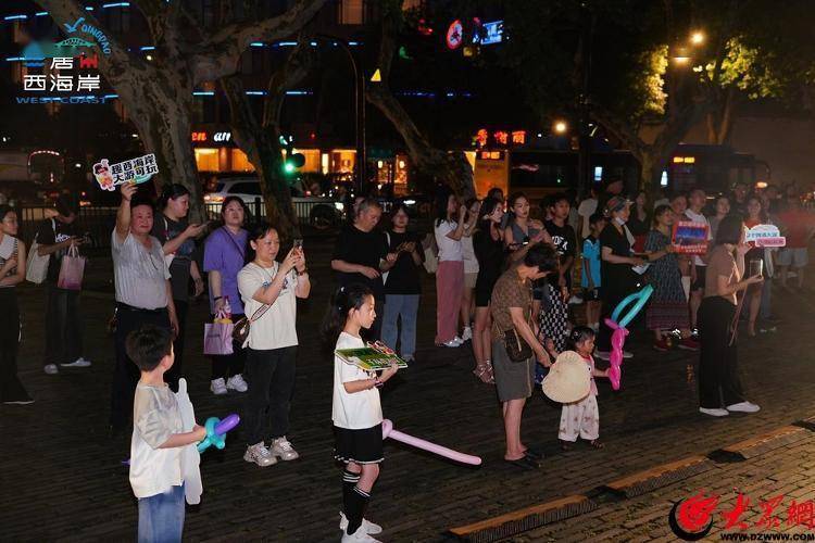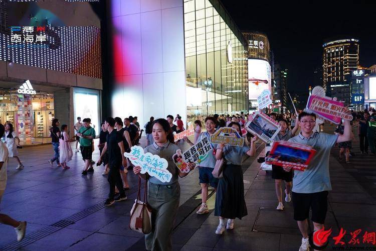 青岛西海岸新区文旅推介团先后“闪现”杭州西湖名胜风景区、清河坊步行街、湖滨银泰In77、武林夜市等杭州热门商圈、地标打卡地,开展了创意快闪巡游活动。在热闹的街头通过特色快闪巡游的方式,与市民游客进行零距离互动。