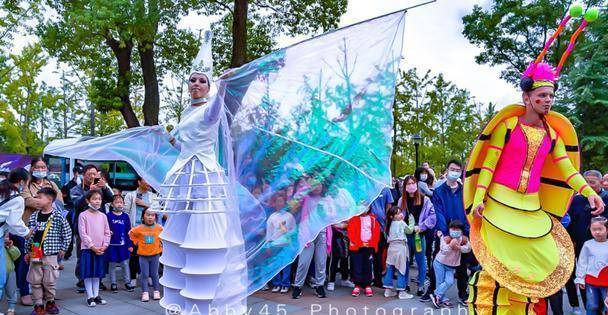 “长腿”的高跷外国演员,随着音乐,灵活地舞动着,还不时与游客握手合影。昆虫造型更是与宋夹城美好的绿化环境相得益彰,让人仿佛进入爱丽丝梦游仙境般,充满童话色彩。
