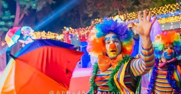 而晚上的十字街西北侧舞台的演出一样火爆,小丑们从台上跳到台下,频频与观众互动,现场老老少少不亦乐乎。