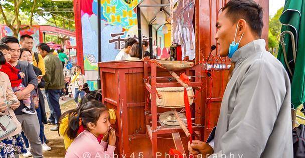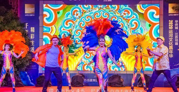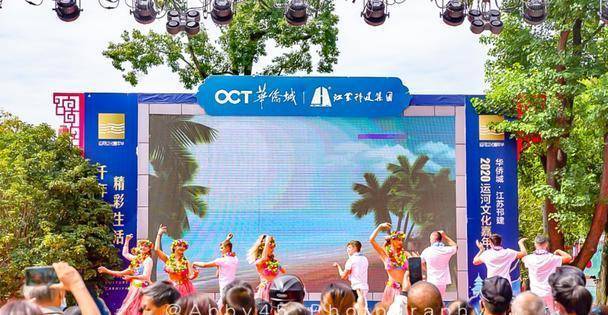而十字街西北侧的舞台更是不同时段有不同精彩表演轮番呈现,刚才我们还沉浸在昆虫高跷的童话中,这会又跟随舞台上的外国演员曼妙的草裙舞,去到了阳光沙滩的夏威夷。