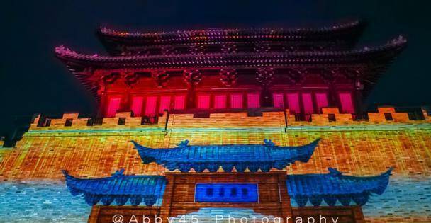 天气好的时候还有空中无人机表演,虽然因为下雨我们没碰上,但还是有幸在宋夹城南门城楼古城墙上看到了超震撼的裸眼4D灯光秀。