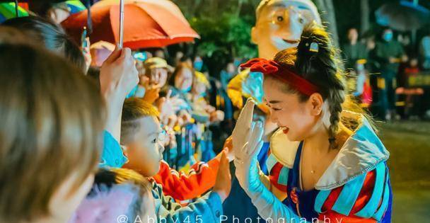 对于小朋友来说,当动画片里耳熟能详的白雪公主,小红帽等出现的时候,简直是圆梦时刻。纷纷与他们击掌庆祝。