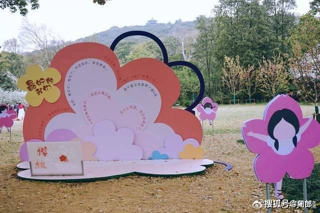 在从景区门口步行到樱花谷的路上,除了映入满眼的樱花树之外,景区还特别设计了许多拍照打卡点,为景区增添了些许俏皮和不一样的风景。