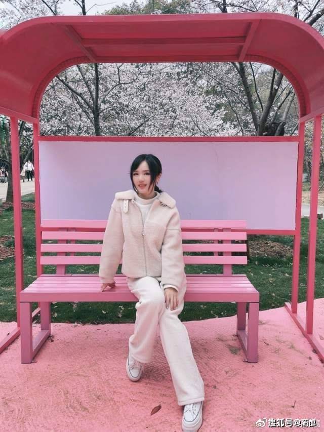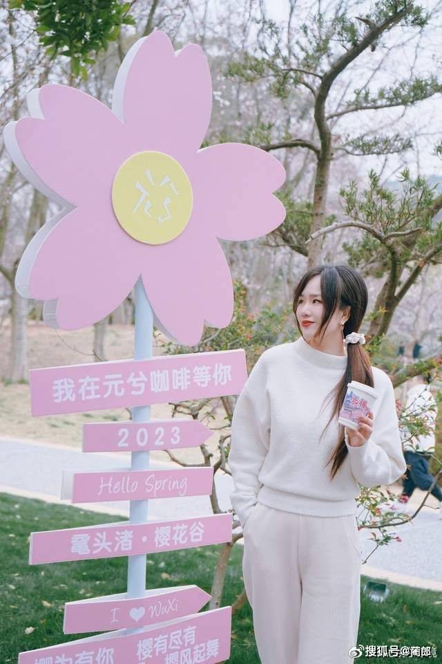 穿过草坪,继续往前走,又遇上一处拍照打卡点,粉色的装置拍照特别有少女感。正如那句标语:樱你而来,最美相遇。