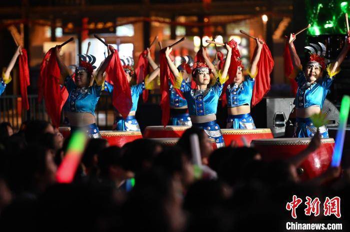 7月7日晚,第七届渝东南生态民族旅游文化节在重庆彭水蚩尤九黎城启动。 何蓬磊 摄