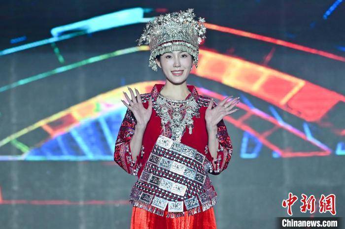 图为模特表演苗族服饰走秀。 何蓬磊 摄
