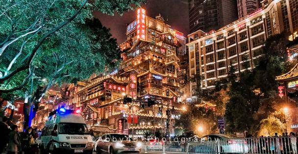 最后入夜时分,就是所有人都爱的洪崖洞了。很多人知道它是觉得它很像宫崎骏《千与千寻》的汤屋,却不知这里原名洪崖门,是古重庆城门之一。这里依山势而建的吊脚楼奇观让人难忘。