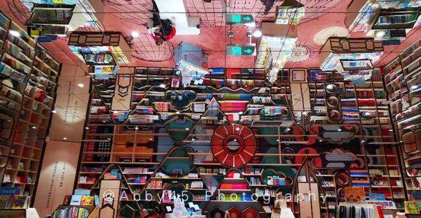 很多人忽略了他们家的儿童阅读区,天花板的镜面效果和整体的童趣设计也相当别致和出彩哦。不得不说,全新的设计理念,让传统书店焕发新生。