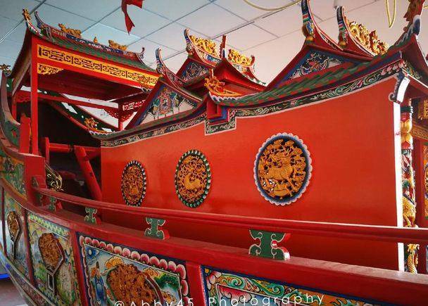 外观奇特的王船并不只是个模型,它完全按照真实的中国四大古船中的福船建造。船上的建筑还原了中国古代的歇山式屋顶,此外船身还绘有代表吉祥如意、合境平安的彩绘图案。现在在沙坡尾“送王船”展示馆看到的是供永久观赏的“送王船”,由造船传承人钟庆丰先生主斧,与厦港龙珠殿传承人阮和国携手共同建造。