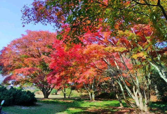 庐山植物园是由老一辈的植物学家们创建的,植物园里有很多都是珍稀物种。比如被称为“活化石”水杉,日本特有的罗汉柏,北美特色的大叶香柏等比较有观赏价值的植物。庐山植物园秋天最美的还是红枫,这里的红枫大多不高,枝叶呈伞形向四周展开,这与中国特有的枫香品种截然不同。这儿的红枫叶子色彩斑斓,颜色艳丽,拍起照来很唯美。