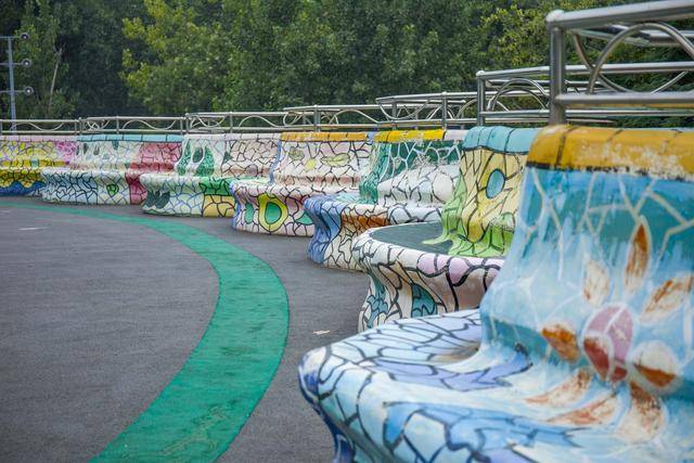 儿童游乐区再往前便是一处七彩的建筑,西班牙风格的建筑,色彩斑斓,彩绘的古村赫然出现在眼前。